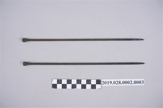 此為劉茂雲家族家中使用的烘爐組,根據劉茂雲95歲女兒口述,10歲時該物件即已出現家中使用,推測為1934-1935年間開始使用之物件。此應為鐵夾(鐵夾兩根),主要是夾煤炭之用。