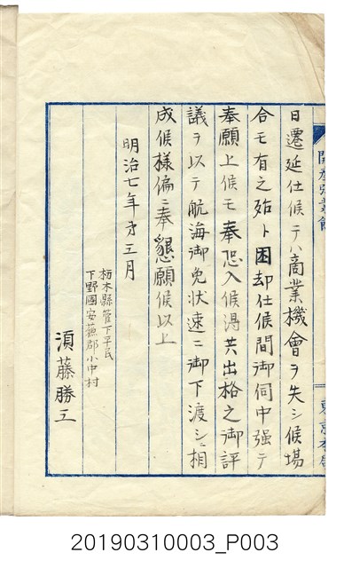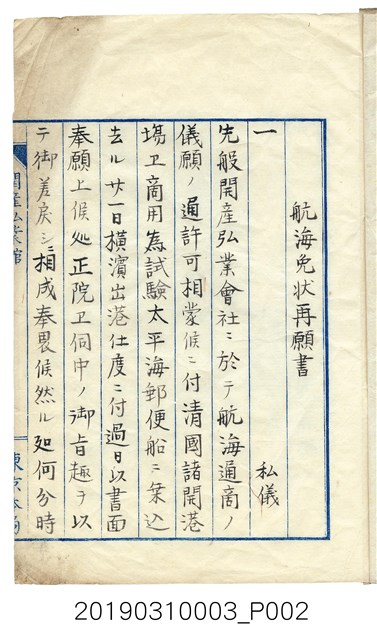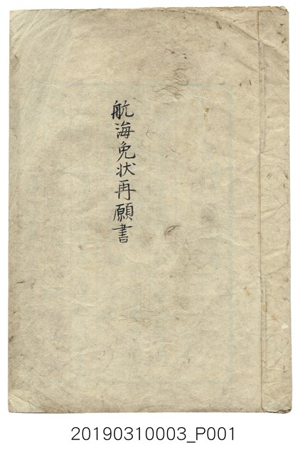 許可證原文日文為"再願書",為1874年前後自日本出海的申請書。