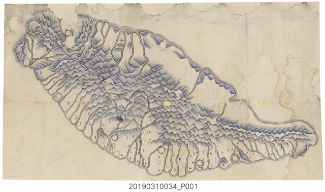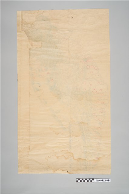 無圖名,亦無地名標示,就內容看出為簡要標示全臺防汛情形的地圖,可能為繪製地圖過程的草稿。