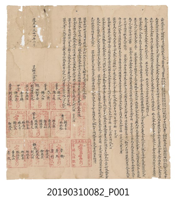 2019.031.0082 道光甲辰24年6月總理劉章職、副總理李龍珠、匠首李德任等人立聯庄合議字