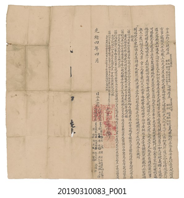 光緒4年4月三塊厝庄業主王蘭芬等與海埔厝庄業主戴能智等仝立合約字