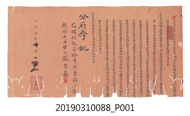 2019.031.0088 同治十年十月十五日分府聯庄條約文件
