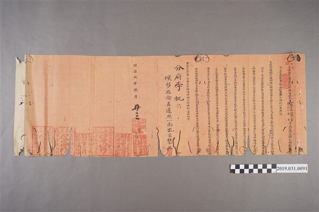 2019.031.0091 同治玖年玖月廿三日分府聯庄條約文件