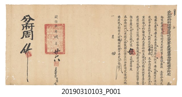 同治玖年玖月廿六日鹿港理蕃海防總捕分府僉舉文件