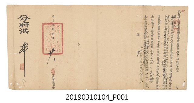 2019.031.0104 同治伍年貳月廿八日鹿港理蕃海防總捕分府僉舉文件