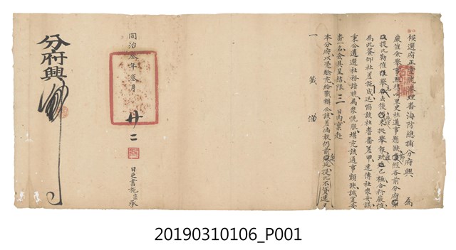 2019.031.0106 同治參年參月廿二日鹿港理蕃海防總捕分府僉舉文件