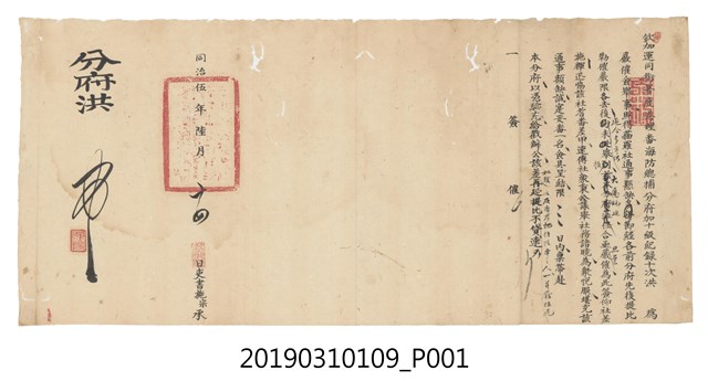 同治伍年陸月十四日鹿港海防總捕分府貓羅社通事懸缺文件