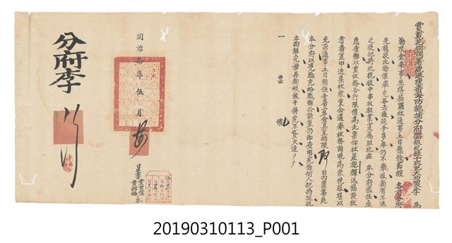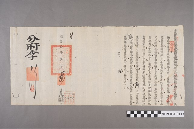 2019.031.0113 同治拾年伍月廿四日鹿港理蕃海防總捕分府僉舉文件