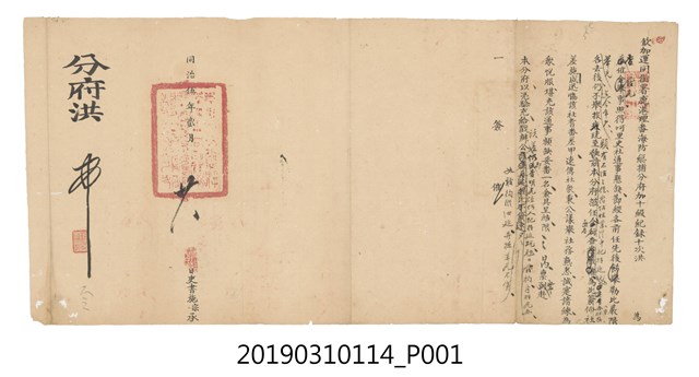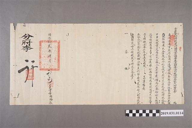 2019.031.0114 同治拾貳年肆月初五鹿港理蕃海防總捕分府僉舉文件