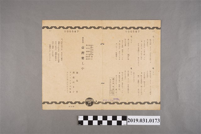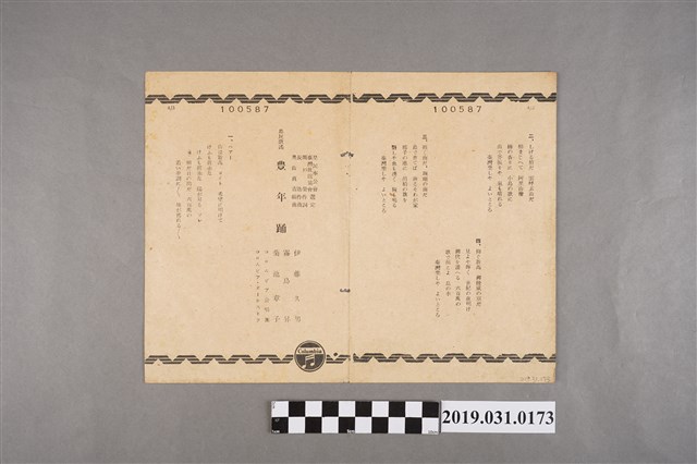2019.031.0173 〈豐年踊〉、〈臺灣樂也〉(臺灣樂しや)歌單