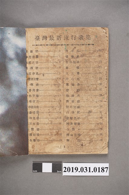 戰後初期簡譜歌本出版品,台中縣員林鎮石川書局發行,內有補破網、春花望露、南都之夜等戰後初期歌曲,推測是1950年前後的出版品。