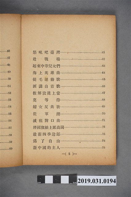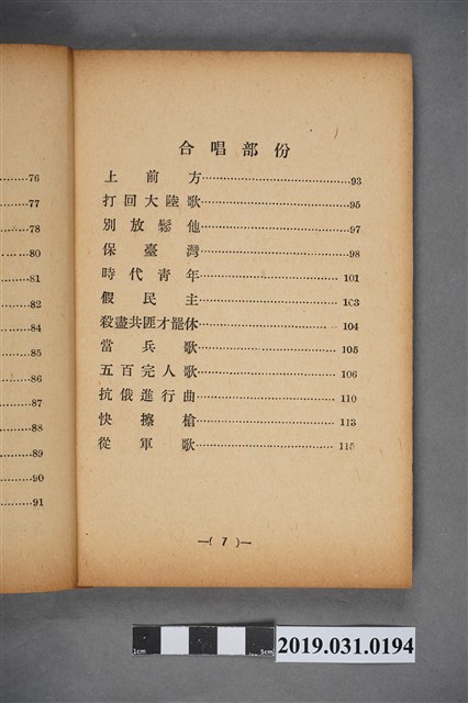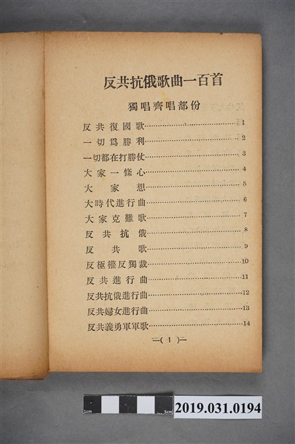 2019.031.0194 《反共抗俄歌曲一百首》歌本