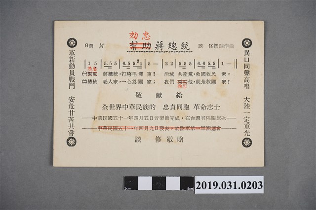 2019.031.0203 《効忠蔣總統》歌詞單