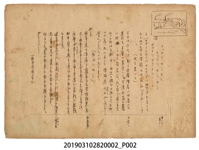 1.本物件為林德正《母子的誓言》紙芝居(按:連環圖紙話劇)。材質為紙類,有封套,共五張。封套上寫著林德正,母子の誓ひ,自作話劇,20枚,皇紀2603年8月31日(按:1943年8月31日)。第1張是畫有1對母子,及農具製造工場工場,背面為圖片故事,背面說明大東亞戰爭發生時,青年陳秋菌與母親的約定。第2張畫有工場的樣子,寫著該工場為瑞東農具工場。背面則說明該工場為陳瑞東父子經營,為了糧食生產而努力製造農具。第3張畫有一位老師和一位老婆婆。背面說明老師以國語(日文)跟老婆婆交談。第4張是老師在課堂教授國語的樣子。背面說明老婆婆認為不管時局多麼艱難,還是持續來上國語課。第5張為老婆婆和他的兒子在工場裡談話。背面說明他們堅持著食糧增產的信念。