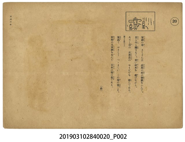 日本教育畫劇株式會社《軍神之母》紙芝居