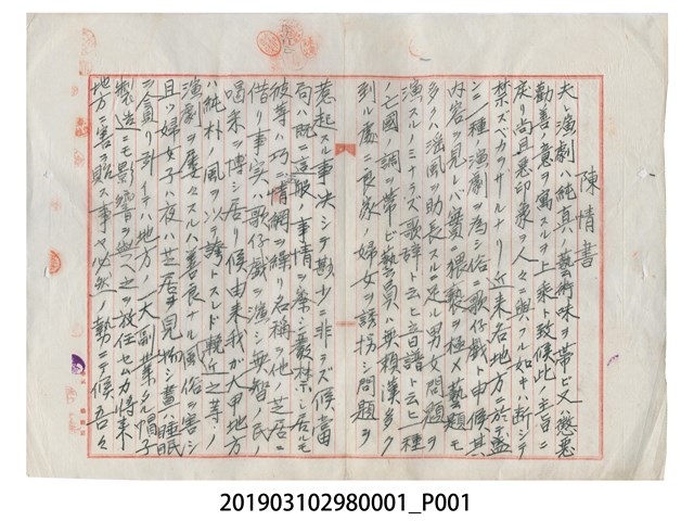 2019.031.0298.0001 大甲地方遏止歌仔戲聯署陳情書1