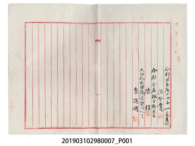 本文件為大正15年1926年)大甲地方遏止歌仔戲聯署陳情書,由彭清靠等帶頭聯署,要求警察單位嚴加取締歌仔戲班的演出。內容指出戲劇本是懲惡勸善帶有藝術味的,近來有些歌仔戲出現猥褻違反善良風俗情況,敦請有關單位注意。 帶頭連署人彭清靠為政治人物彭明敏父親,1914年至1933年間在臺中大甲開設德仁醫院,在地方上頗有威望。