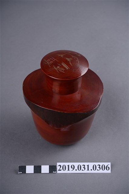 1.本物件為臺北圓山神社圖樣茶罐。底色為褐色,木製材質。底部刻有圓山神社的紋路。2.1901年,日本當局發布於臺北劍潭山創建臺灣神社,社格為官幣大社,為臺灣社格最高的神社,祭祀1895年乙未戰爭時在臺灣去世的近衛師團長北白川宮能久親王。1902年,神社完工,同年10月27日舉行鎮座儀式,次日舉行大祭。中日戰爭及二次大戰期間,日本在臺實行皇民化運動,於戰爭結束前一年1944年,將臺灣神社升格為臺灣神宮。戰後神社建築遭到拆除,現原址為圓山飯店。