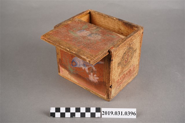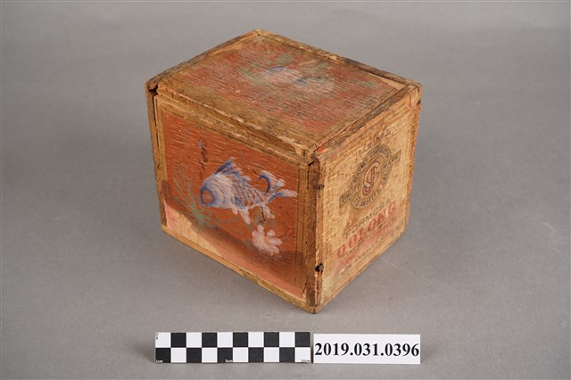 2019.031.0396 木製CJ魚彩繪小茶箱