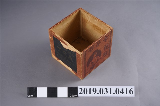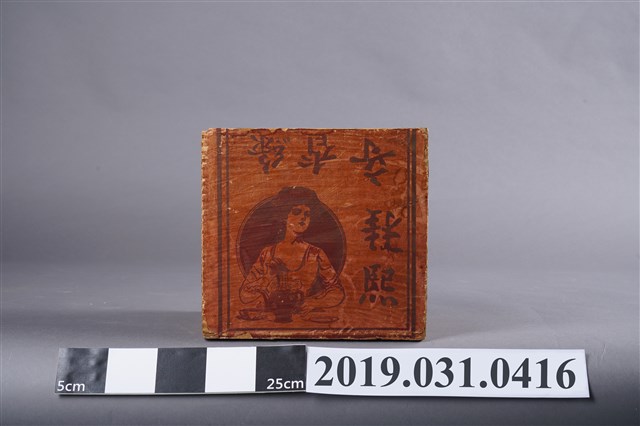 1.本物件為木茶箱。木製正方形。正面寫著「FORMOSA TEA」(臺灣茶),下方寫著WILLIAMSPORT WHOLESALE GROCERY COMPANY字樣。 另一邊則是有一位正在泡茶的仕女圖樣,上方寫著「奇香綠」,下方寫著「秋熙」。2.日本領臺之初,臺灣總督府極重視臺灣茶業的發展,對臺北、新竹等主要產茶地區進行茶業調查,並推動臺灣茶業改革。從茶園經營管理的改良、茶業人才的養成、茶業的輔導獎勵、優良茶樹的選種、茶樹栽培與茶葉摘採方法的改良、機械製茶的試驗與推廣、茶業產銷組織的成立、茶葉交易的簡化與合理化、茶葉品管機制的建立、國際茶市場的拓展、茶葉行銷的廣告宣傳,以及臺灣紅茶的發展等。在茶業現代化發展的過程中,除了官方扮演主要的推手之外,民間運用自身的力量投入茶業之改良亦頗有成就,1918年總督府推行茶業獎勵計畫、鼓勵茶農組織茶業組合之,臺北州與新竹州茶產地紛紛成立茶業組合或茶業公司,並進一步組織茶業公司聯合會或茶業研究會,以集體的力量協調地區茶葉之產製,並舉辦各項活動推動茶業改良的工作。