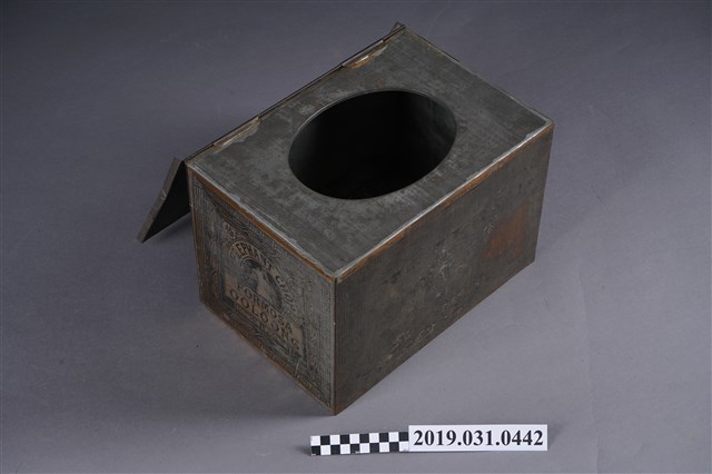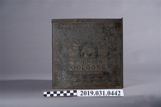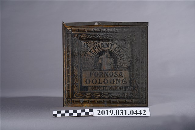 本物件為ELEPHANT CHOP(按:大象商標)品牌的臺灣烏龍茶罐。罐身為方體,罐口為圓孔。正面中央繪製大象;圖案的品牌商標,商標上方為「ELEPHANT CHOP」的品牌名稱,下方為「FORMOSA OOLONG」的商品名稱商品,名稱下方為「ROBINSON & WOODWORTH」的茶商名稱。