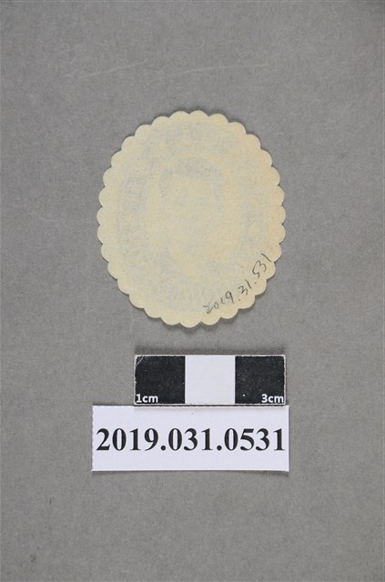 1.本物件是新芳春茶行王圖景肖像貼紙。王圖景肖像貼紙共有13張,用以黏貼信封口,圖景是負責人王連河的字。