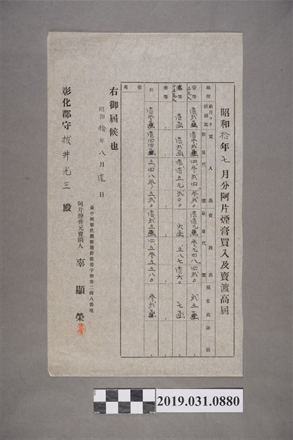 2019.031.0880 阿片煙膏買賣價錢紀錄
