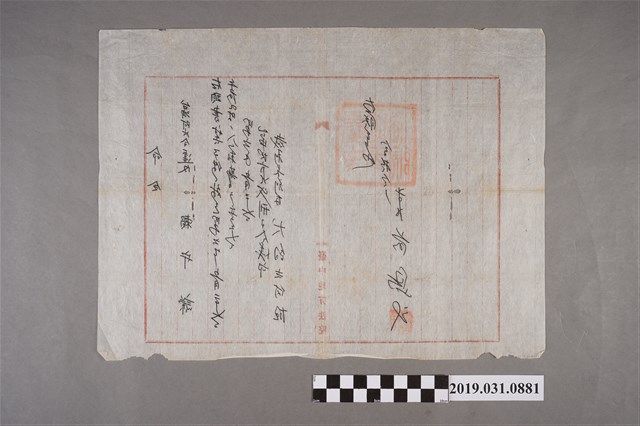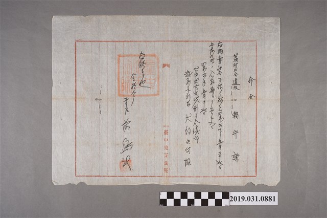 2019.031.0881 臺中地方法院賴守謙違反阿片令命令書