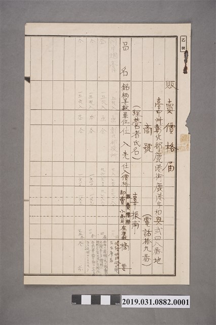2019.031.0882.0001 阿片煙膏販賣價格登記文件1