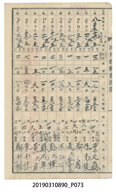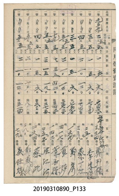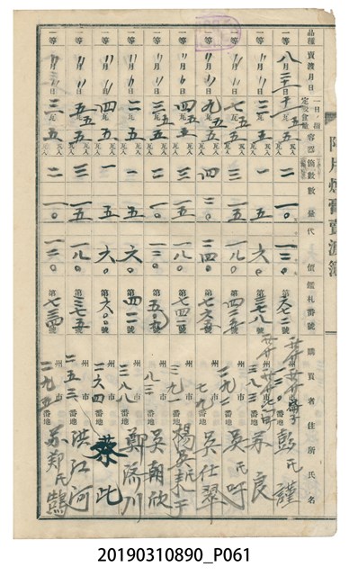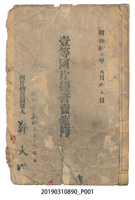 2019.031.0890 壹等阿片煙膏賣渡簿