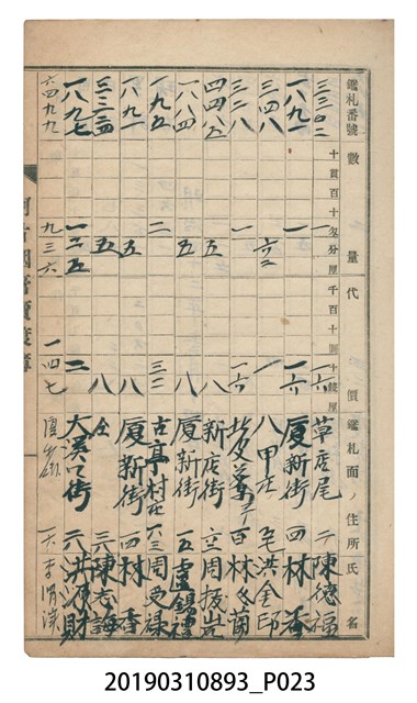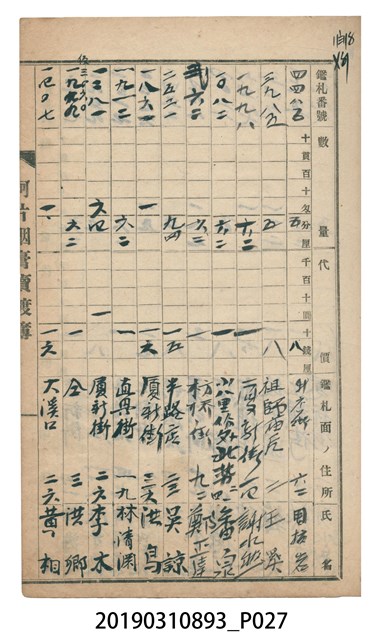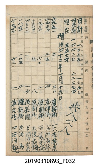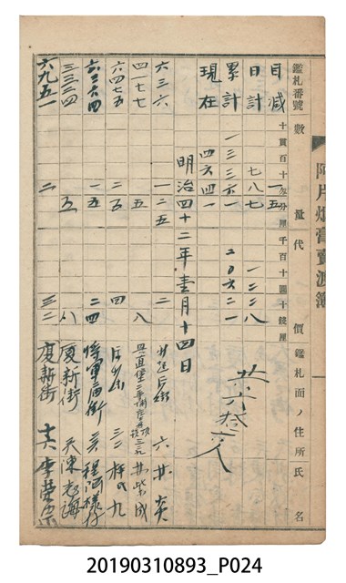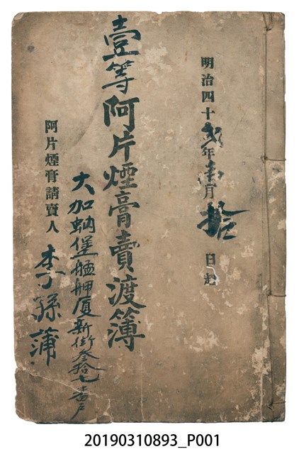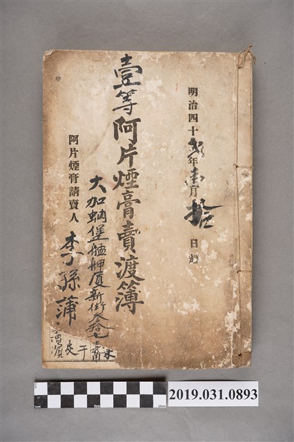 2019.031.0893 壹等阿片煙膏賣渡簿