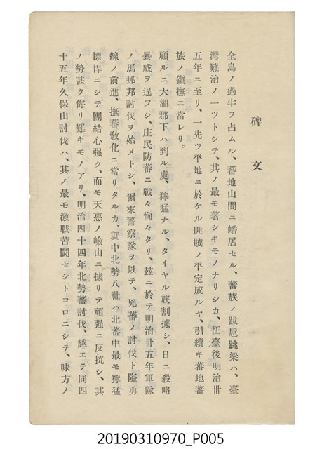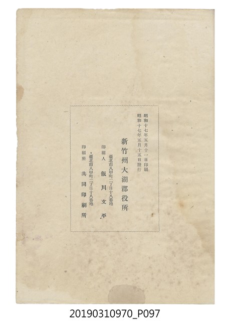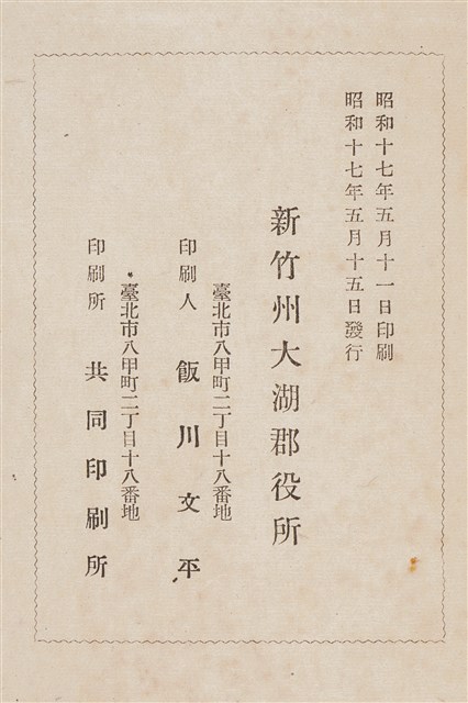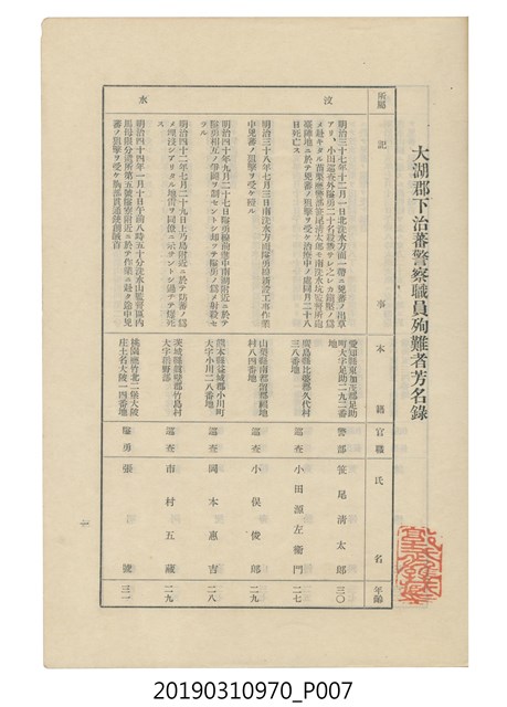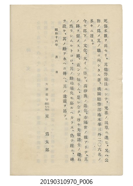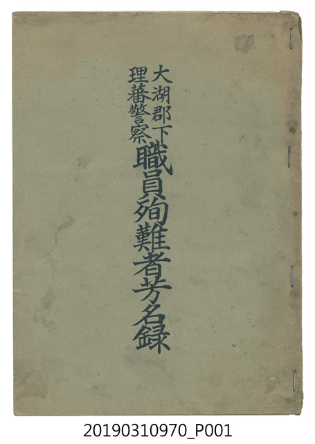 2019.031.0970 大湖郡役所編《大湖郡下理蕃警察職員殉難者芳名錄》