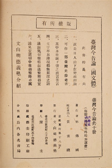 2019.031.0976 林佛國著《臺灣今昔論》