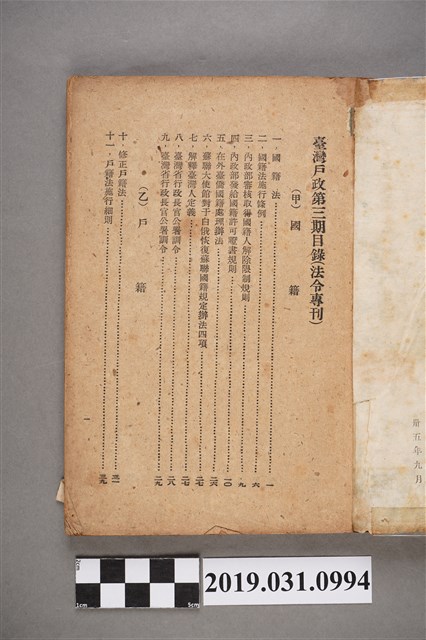 2019.031.0994 臺灣省行政長官公署民政處印《臺灣戶政》