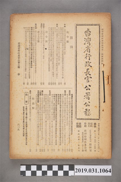 2019.031.1064 長官公署秘書處編輯室編輯《臺灣省行政長官公署公報》合訂本