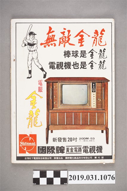 1.本件是中華日報叢書委員會編《無敵金龍》,由中華日報社、中華日報南部版聯合出版發行,本書為中華民國58年(1969)9月9日再版之版本,版權頁並載明每冊定價為新臺幣10元。書籍作平裝本,封面作彩色印刷,以紅色、黑色兩種顏色作底色,正面印有大幅金龍棒球隊之黑白照片,照片中的球員舉著印有「LITTLE LEAGUE 1969 WORLD CHAMPIONS」之旗幟。右上角有由右至左橫向閱讀之白色楷書「無敵金龍」字樣,為本書書名,書名下方印有小字副標題「中華少年棒球隊勇奪世界冠軍紀實」;封面照片下方印有中華日報社圓形社徽,以及本書所屬叢書名稱「中華日報甲種叢書之七」。本書封底為以彩色印刷之平面廣告,為電視機廣告,廣告詞為:「無敵金龍」、「棒球是金龍」、「電視機也是金龍」、「電眼金龍」;本則廣告下方有商品品牌與型號等說明,所載文字分別是「新發售20吋20DM-53 不二價10,000元」、「National」、「國際牌黃金電路電視機」、「台灣松下電器股份有限公司 榮譽出品 國際電化商品股份有限公司 總代理」。2.本書之目次記述如下:畫頁、前言、金龍的誕生、點將錄、臺南四傑(陳智源、莊凱評、李俊杰、蔡松輝)、臺東雙雄(余宏開、郭源治)、教練吳敏添、小國手的搖籃、小金龍埋頭苦練、赴日遠征、橫掃東瀛凱歌歸、赴美問鼎世界杯、奪得世界冠軍、賽後論戰、小國手活躍選手村、國際棒壇的讚譽、少年棒賽的歷史與規則、中華日報與棒球運動、棒球通用術語淺釋。3.棒球運動一般認為源自於19世紀的美國,並經由留美學生、傳教士、教師等人物傳至亞洲。而臺灣棒球運動的開始,則是棒球傳至日本後,再於1895年日本政府統治臺灣後傳入。臺灣棒球運動在中華民國政府時期仍然十分熱絡,1969年,金龍少棒隊取得遠東地區代表權,赴美參加美國少棒聯盟主辦的世界少棒錦標賽,並奪得冠軍,是臺灣第一次取得世界冠軍,在當時政治局勢低迷的狀況下鼓舞了民心,也讓少棒棒球隊熱潮達到高峰。