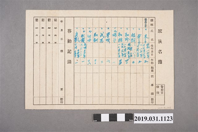 東勢郡役所發行家庭用米穀配給券與家族名簿