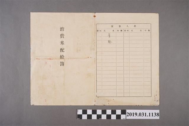 2019.031.1138 謝樹置消費米配給簿