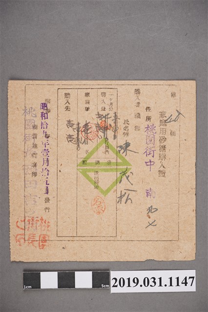 2019.031.1147 新竹州家庭用砂糖購入證與砂糖特別購入券
