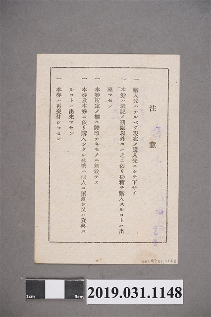 新竹州家庭用砂糖購入證與砂糖特別購入券