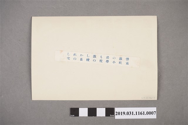1.本物件為日本討伐霧社相關照片,以及臺南部隊的蕃討戰,每張照片背後皆有說文字說明,此張照片文字為「慘激の最も激しかれし霧社小學校の校長の宅」(狀況最慘烈的霧社小學校校長住宅),照片保存良好。