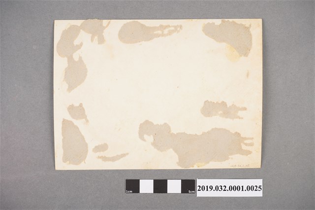 此張照片中共有十五位女性合影,其中女性的髮型為捲髮或綁髮,服裝樣式為連衣裙、風衣外套,有些女性繫有絲帶,並持有木棍。背景為海岸邊,女性站在大樹前留影,初步推斷為朋友出遊或是學校修業旅行所拍的合影,成員與108053-0001-0024之成員相同。此張照片泛黃。