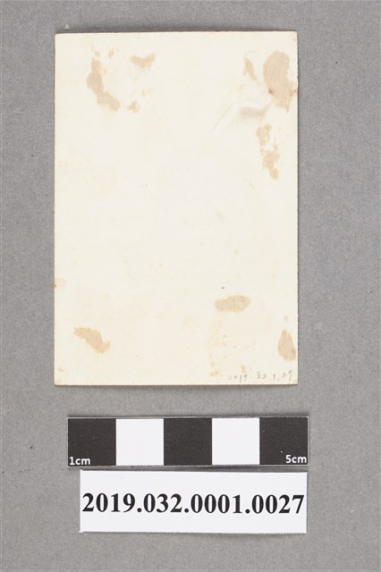 此文物為陳吳秀梅女士與另外一名女士的合照,年代不詳。站在左邊是陳吳秀梅女士,髮型為耳下短捲髮,身穿長袖上衣與長裙。此照片有些許的白色汙漬和刮痕。