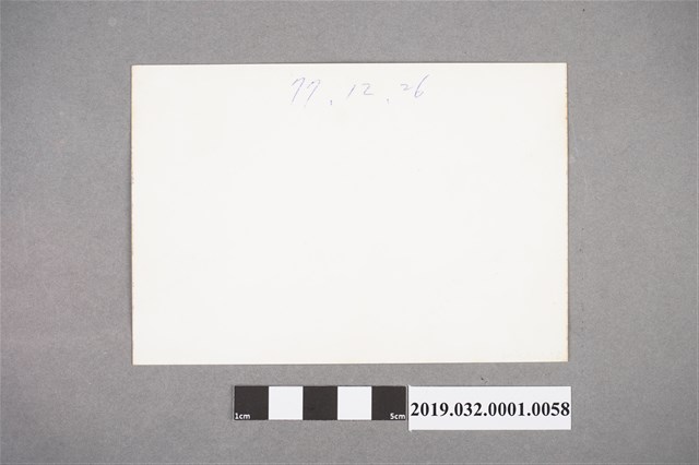此文物為照片,為彩色照片,為陳吳秀梅女士之個人照,拍攝地點應為家中,拍攝日期為12月26日,陳吳女士坐於竹藤編製成的椅子上,椅子上有鋪一層白色布料當墊背,穿著藍色長袖上衣與咖啡色長褲,其左側有櫥櫃,後方有桌燈,右側有長椅,長椅上方有畫作。