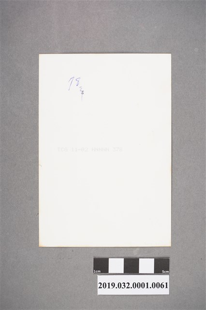 此文物為照片,為彩色照片,為陳吳秀梅女士之個人照,拍攝地點應為家中陽臺,陳吳女士身穿淺藍色之長袖襯衫,白色長褲,其身後有3盆盆栽植物置於欄杆上。
