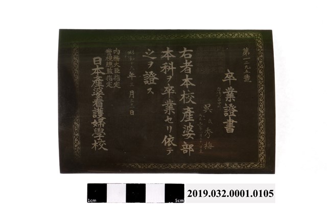 2019.032.0001.0105 吳秀梅卒業證書底片