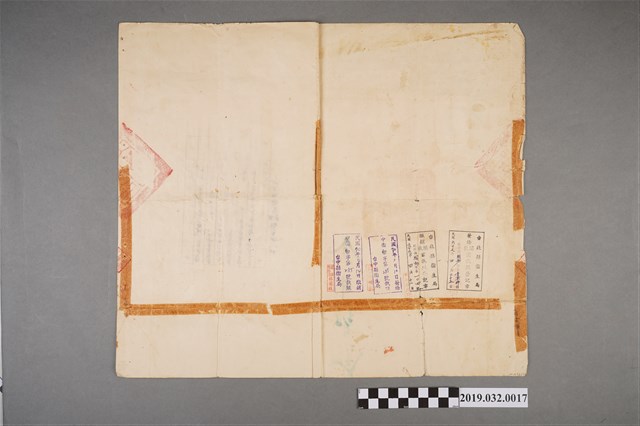 這張是發給陳吳秀梅(時為陳秀梅,上記31歲)應考試院助產士考試及格,依助產士法而給予的助產士證書,民國40年(1951)12月19日頒發,助字第貳捌伍壹號,上有時任內政部長余井塘之印,貼有大頭照及3張面額1元的中華民國印花稅票,多處折痕,有破損。