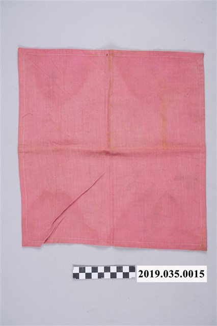 本件手巾繡有花朵圖樣與日語,左下方繡櫻花枝葉,右方繡有「敷嶋の大和心を人問はば」、「朝日に匂ふ山櫻花」等字,乃取自日本江戶時期學者本居宣長(1730-1801)創作之和歌。 本件原與潘踏比厘等物件收貯在一起,應為潘家某女性成員所有的往昔日常生活物件。然經詢問捐贈者潘怡宏先生後,仍不確定為潘家哪一位女性遺留之物,因此尚待進一步確認。