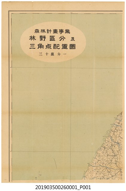 本件為印刷地圖,屬於比例尺1:300,000「森林計畫事業林野區分及三角點配置圖」四幅分圖之中的左上幅。