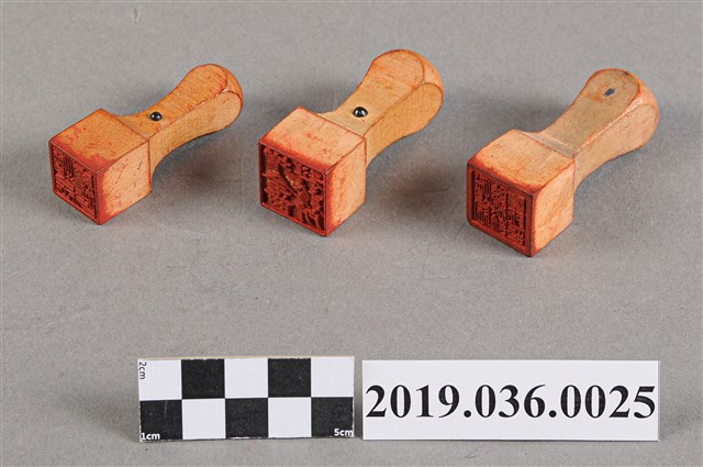 本組為張子敬戰後於高雄市自行開立診所時所使用的印章,共1組3個,方形木刻印章,其中2個印章刻有篆體字「增全齒科診所之印」與「增全齒科印」,1個印章刻楷體字「增全齒科診所」,三顆印章皆有使用壓印朱紅色印泥的殘跡。